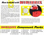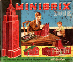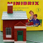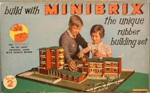 Les jeux de construction Minibrix utilisaient des briques en caoutchouc pour construire des maquettes de maisons et autres bâtiments. Ils étaient fabriqués en Angleterre. |